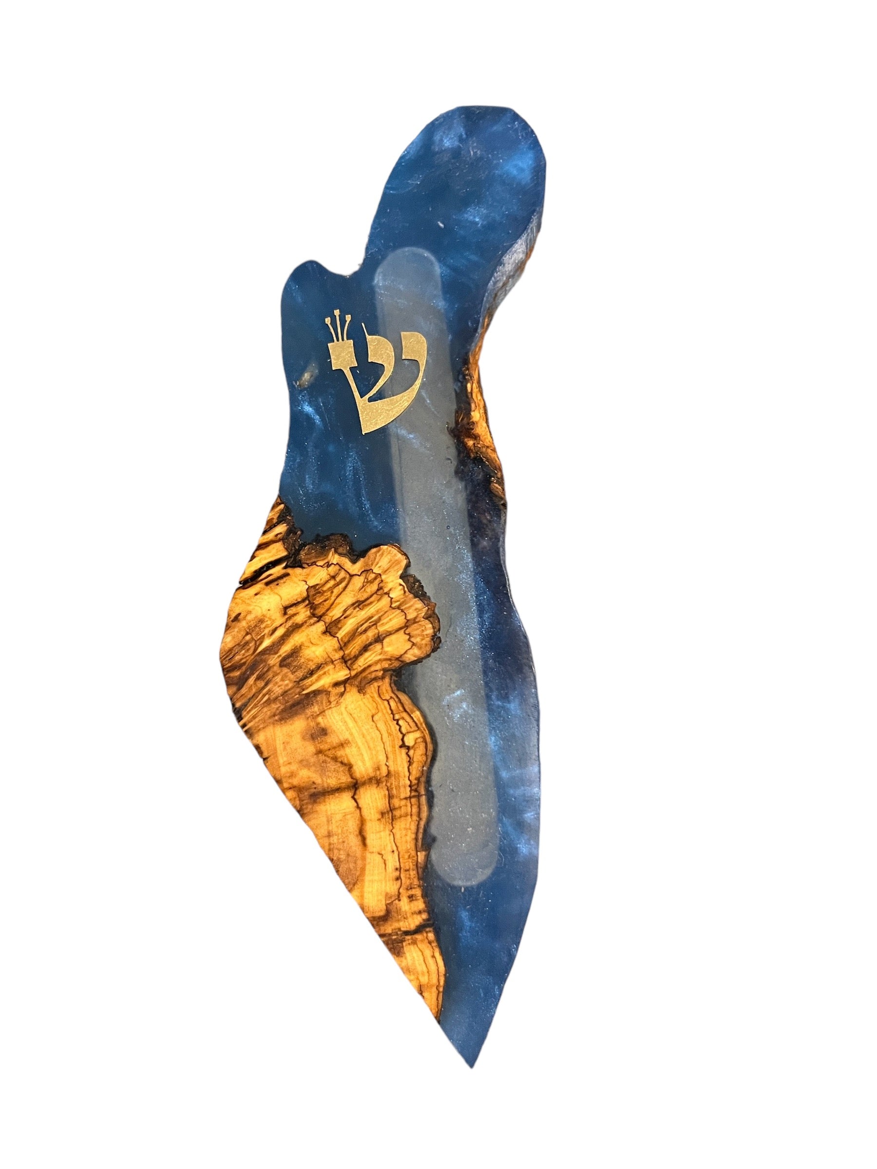 Handcrafted in Israel by Eial Ovin, this Israel shaped mezuzah is made from olive wood and resin and created with meaning, care, and intention. Each piece is one of a kind, honoring the beauty of the land while bringing warmth, artistry, and meaning to the doorway. Designed to be both symbolic and beautiful, it is a meaningful piece for the home and a thoughtful gift to be treasured for years to come.